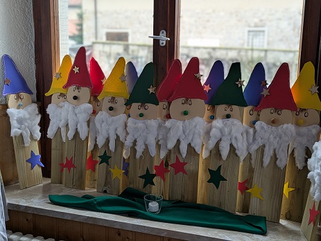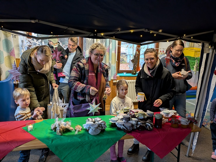 Für unseren Adventsbasar am Mittwoch, 19.11.2025 haben die Kinder fließig gerwerkelt, gebastelt und Marmalde gekocht. Alle Familien und das ganze Dorf war eingeladen. Die angebotenen „Waren“ konnten auf Spendenbasis „gekauft“ werden. Die Kinder haben fleißig dabei geholfen.